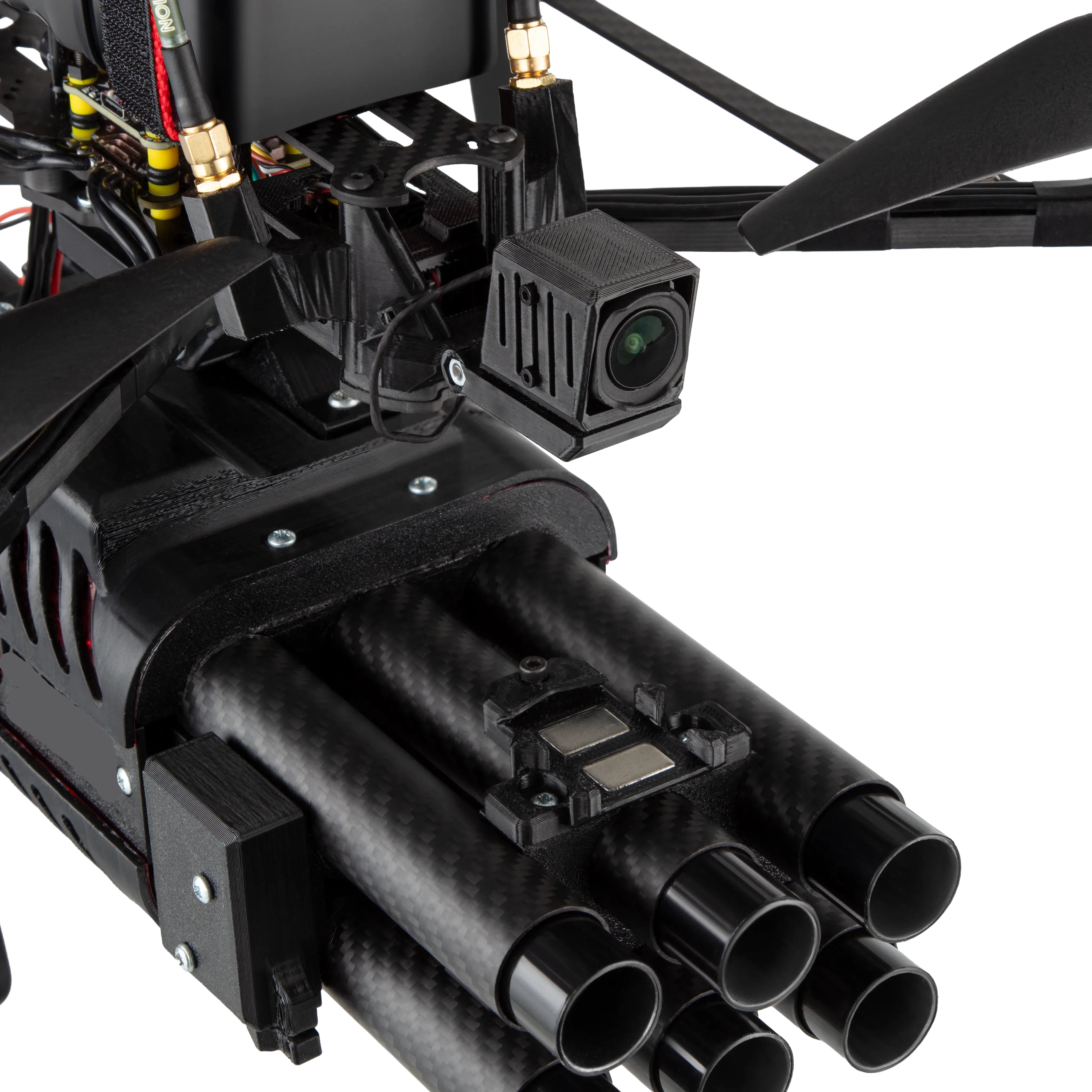 Автономний БПЛА-перехоплювач з модульним озброєнням для нейтралізації FPV-дронів, DJI Mavic та інших повітряних загроз у реальному часі.